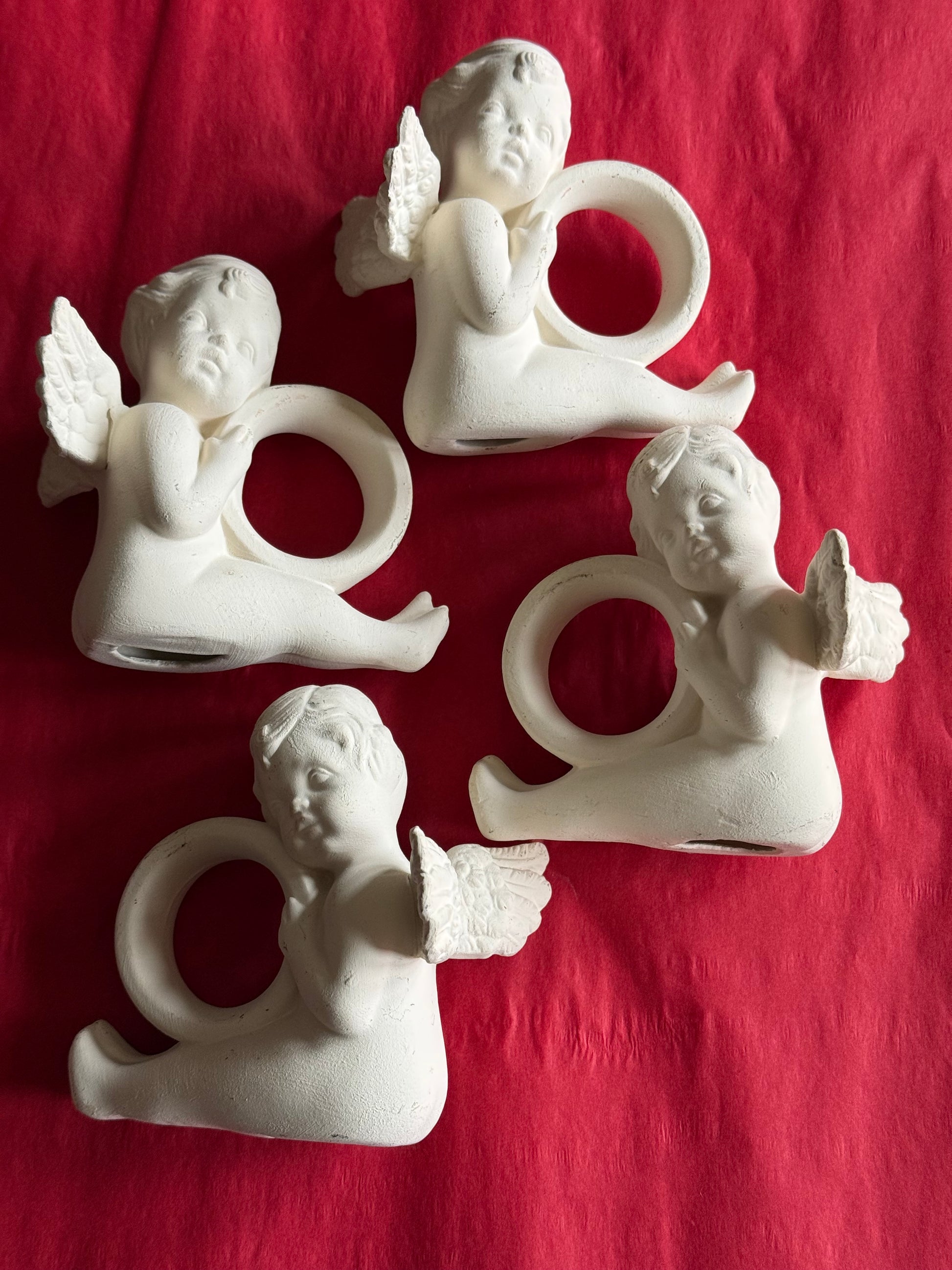Set of 4 Cherub / Angel Napkin Rings – White Bisque Style