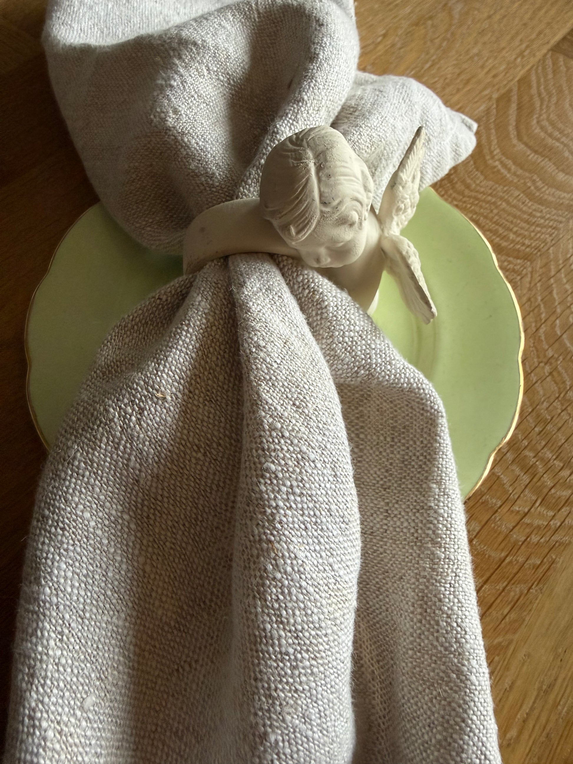 Beautiful vintage-style napkin rings featuring seated cherub angels with detailed wings and serene expressions. Perfect for Christmas tablescapes, weddings, christenings, or romantic cottage-style décor.