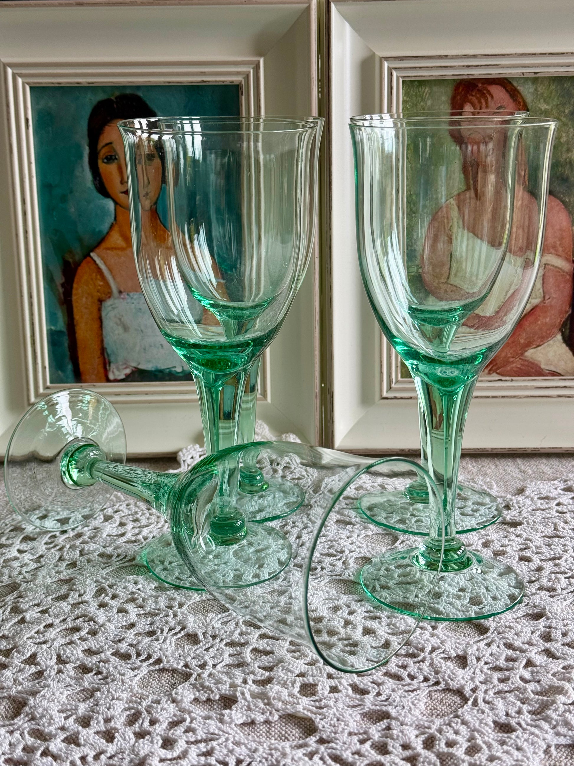 Vintage green stemmed glasses.
