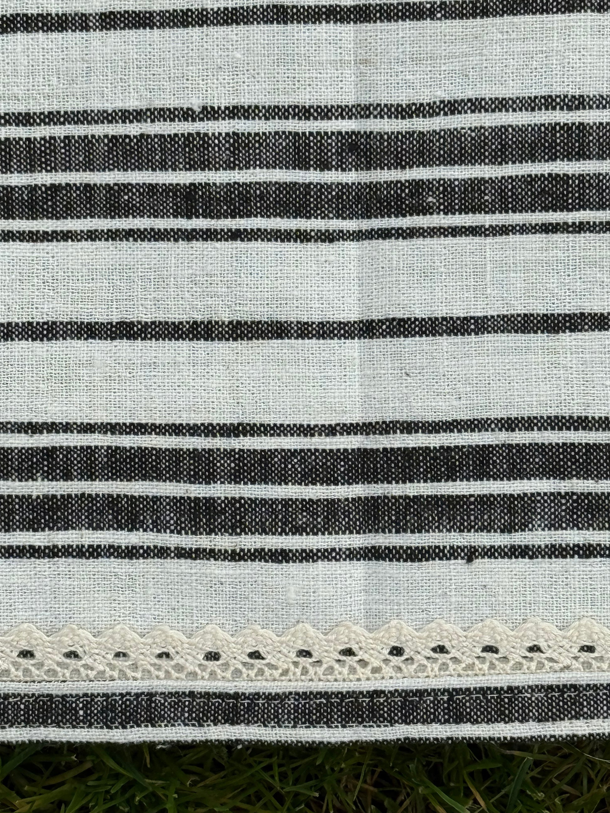 🌾The fabric features a subtle, even weave that speaks to traditional craftsmanship, while the edges are adorned with delicate cotton lace, adding an elegant and romantic touch.